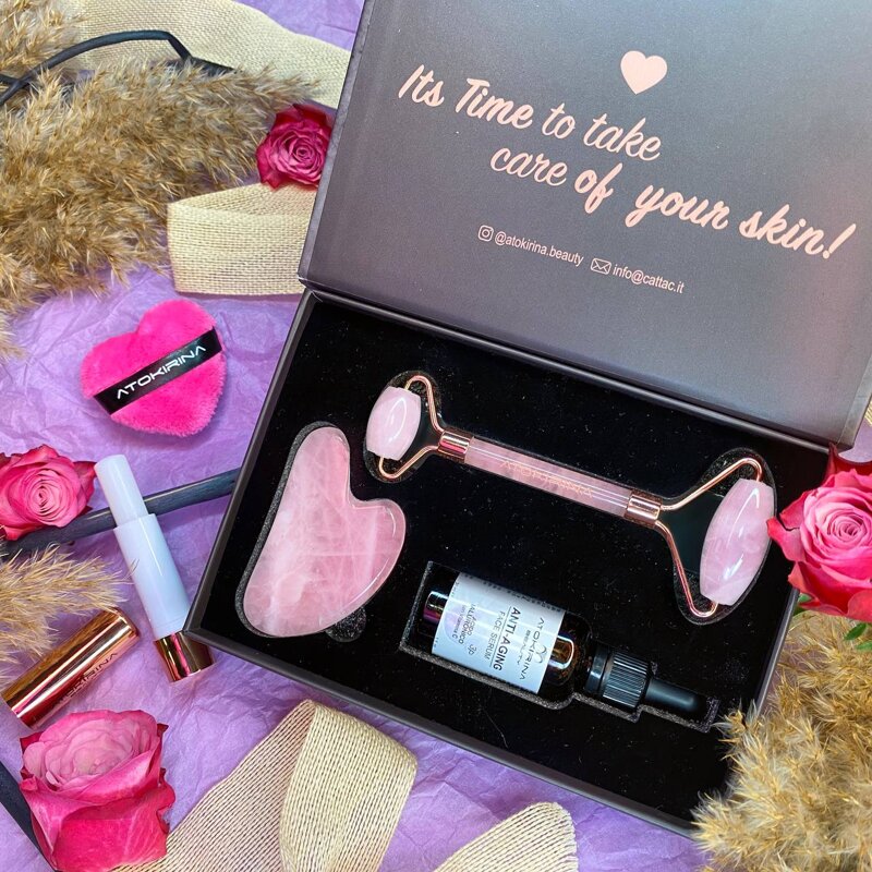 NR. 1 Box SkinCare Rose Quartz - Roller + Guasha + Siero Viso AntiAge